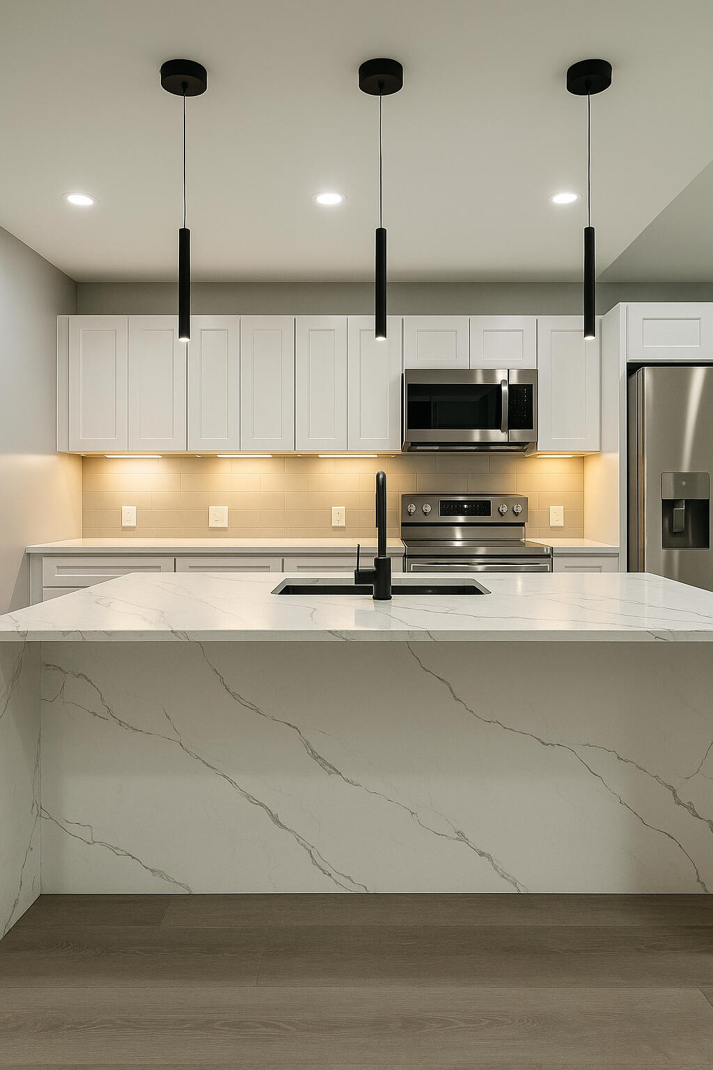 Beautiful kitchens. Spa-style bathrooms. Fully installed.We specialize in kitchen and bath transformations — delivering high-end finishes without the custom price tag. Full kitchen packages, including premium cabinets and quartz countertops, start at $9,500 installed. Want a complete facelift? Full kitchen remodels from just $14,500.Master baths? $11.5k ✅